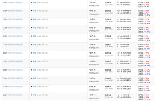 上图是上海有色网信息科技股份有限公司举办的2021SMM华南有色金属年会的邀请函发送数据。这次年会总共需要发送100万封邮件邀请函,由于发送量大,在U-Mail邮件营销平台客服人员的建议下,上海有色网信息科技股份有限公司的工作人员采用了分批分时段的发送模式,邮件发送的成功率在97%左右,邮件发送的点击率最高达到了35.29%。这主要得益于U-Mail邮件营销平台强大的邮件群发系统和十多年的邮件营销服务经验。