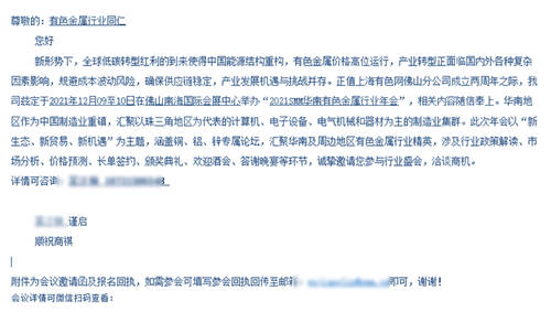 上图是上海有色网信息科技股份有限公司举办的2021SMM华南有色金属年会的邀请函邮件内容。这封邮件内容简洁明了,首先告知被邀请人本次年会举办的主题和背景以及会议的大致环节,如果想了解更多会议详细可以微信扫描邮件中的二维码查看,并把邀请函和参会回执采用邮件附件的形式一并发送。由于邮件中带有附件,并且最大的附件有5.15MB,非常容易造成邮件发送速度缓慢、投递失败、ISP拦截等情况,如果使用邮件*来发送效果可能会大打折扣,但是对于U-Mail邮件营销平台来说“小菜一碟”,因为U-Mail邮件营销平台拥有大量邮件服务器和优质IP资源,采用IP轮循机制群发邮件,保障了邮件发送的稳定性,可以做到群发千万不封号,而邮件*前期可以发送一定数量邮件,后期容易封号,封IP,要不断注册使用不同发件箱,不仅效率低,效果也没保障。并且U-Mail技术研发团队一直不断在优化平台功能,先后推出了邮件预发送效果检测、无效邮件地址清洗、白名单服务、邮件内容动态化等特色功能,以此来帮助客户提升邮件群发的效果。
