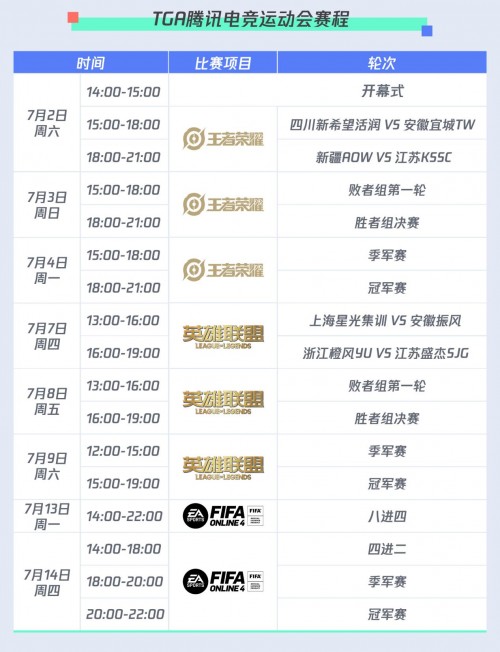 本次TGA夏季总决赛将于7月2日至17日进行,将开展12个项目的比赛,其中既有TGA腾讯电竞运动会的多项电竞对抗赛事,还有跑跑卡丁车手游、街霸:对决、QQ炫舞2、使命召唤手游、腾讯先锋-王者荣耀、腾讯先锋-欢乐斗地主等多个系列赛项目穿插其中,进一步丰富了赛事内容和趣味性,为全国电竞爱好者带来一场多元化的赛事盛宴。