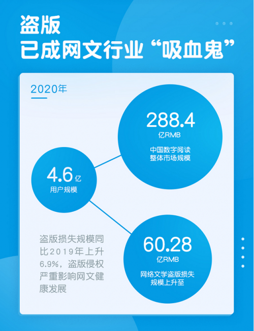 目前我国的正版网络小说网站约有几十家,其中,具有代表性的大型网站只有十家左右。而所有这些正版文学网站都被盗版冲击。上海交通大学知识产权研究中心博士刘永沛认为,网络文学的文字载体很容易转贴到其他网站,所以盗版的威胁更大。