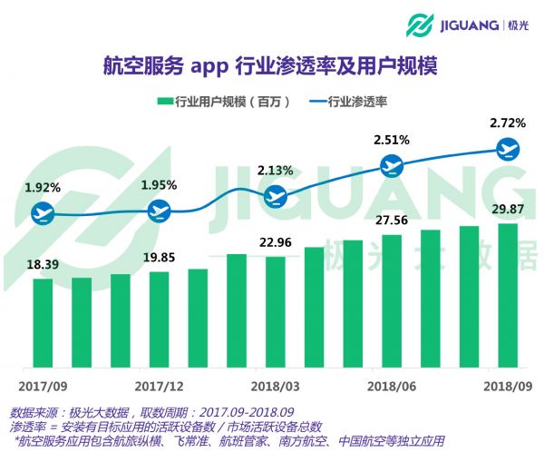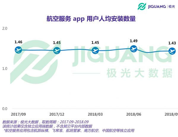 用户规模2,987万,用户人均装有1.43款航空服务app