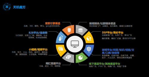 1、连接。天机魔方是一个智能化、综合化的数字营销系统,融合了当下最主流的数字营销方式和媒体营销渠道,包括搜索引擎渠道,新闻门户渠道,自媒体渠道,DSP营销渠道,知识经验渠道,网红直播渠道等等,能够为企业连接目前几乎所有的主要营销资源,帮助其快速获取流量,推广品牌。