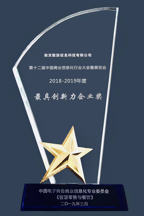 3月21日晚间的“2018-2019年度中国智慧零售与餐饮颁奖盛典”,数族科技荣获“最具创新力企业奖”,这标志着数族科技致力于成为“企业服务产业互联网领军者”的定位、成为中国商业信息化开放式融合大中台的愿景,已引起业界的广泛瞩目及充分认同。