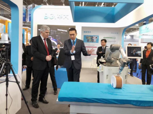 应中国国际商会邀请,华大集团在莫斯塔尔博览会中国馆设立展台,全面阐述“基因科技造福人类”的理念,深入介绍基因测序服务和测序仪等拳头产品,并展示了由华大集团旗下子公司华大智造研发的远程超声诊断系统,得到现场中外与会政府高层官员的关注与赞赏。