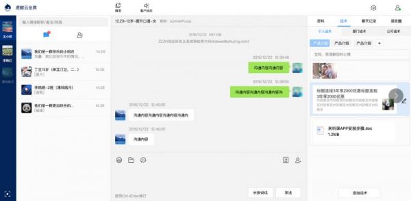 批量复制成功经验:公司话术、部门话术、个人话术三种话术。公司话术与部门话术由公司编写,销售自主选择,也可以根据系统推荐最热话术与个性化差异智能推荐,还可以按不同客户标签自己总结话术,所有内容均随着打开对话框自动弹出,简单方便。