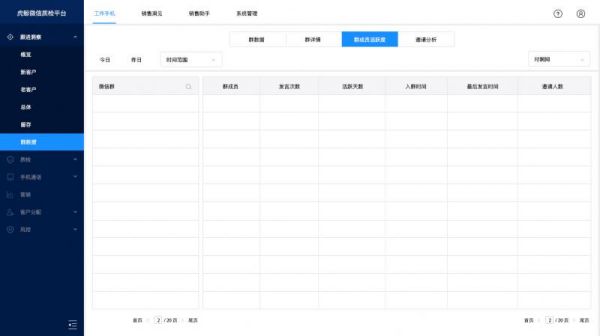 绩效管理:自动统计员工工作量,每日新增量、有效沟通率、总沟通时间、平均沟通时间,以及任意时间段的工作量,及公司既定动作的完成情况。