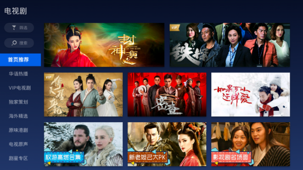 电视猫视频目前虽然下架了直播的功能,但是它的点播功能还是非常强大的。目前热播的很多国产影视剧、综艺节目都是能直接搜索到的。