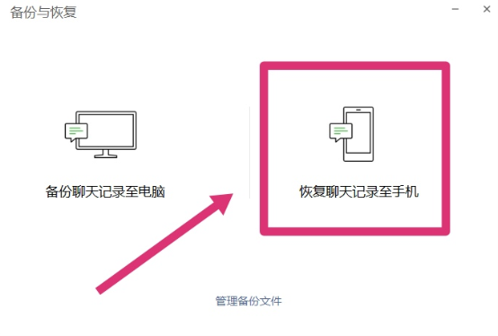 7、鼠标左键点图中框起来的字样“恢复聊天记录至手机”;