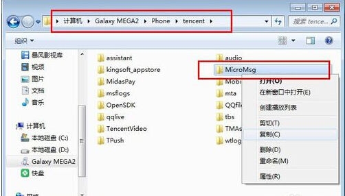 2、打开SD卡所在的文件夹,找到/sdcard/Tencent/MicroMsg/