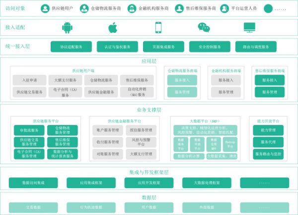 广义上,数商云开发对于整个供应链平台的模型,分为四个层级: