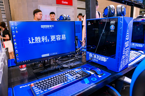 要说此次攀升带来的最重量级的电竞装备,那就不得不说到这台攀升(IPASON)与电竞豪门PSG.LGD战队联合定制的VGAME电竞游戏主机了。这款主机以攀升(IPASON)旗下旗舰主机VGAME为蓝本,在外观设计上充满了“老干爹”的浓郁气息——机箱上增加了PSG.LGD战队定制图案、专属定制侧板、战队LOGO和经典的蓝色涂装,让你在畅爽游戏的同时感受到专属PSG.LGD的电竞之魂!VGAME畅爽的游戏体验加上PSG.LGD的信仰加持,让它一展出就被电竞爱好者们包围。