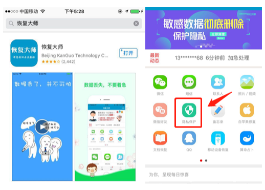 获取软件方法,苹果手机在APPﻪstore搜索【恢复大师】,下载安装后,在首页可以看到一个【隐私保护】选项,既有专业的工程师帮你一对一操作。