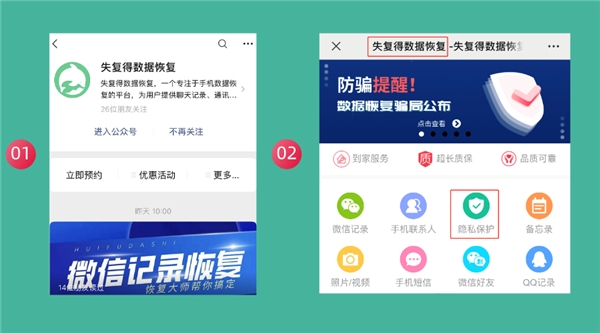 安卓用户可以直接在微信搜索【失复得数据恢复】公众号,进入公众号,选择【微信记录】选项预约专业工程师。可以将本篇文章截图发给工程师,即可享受大大的优惠哦。