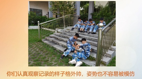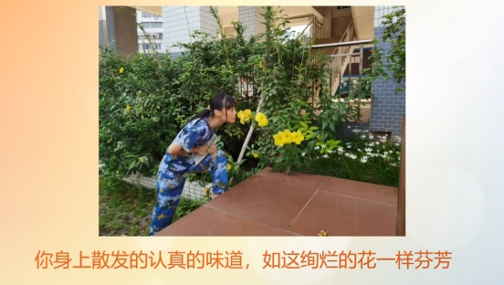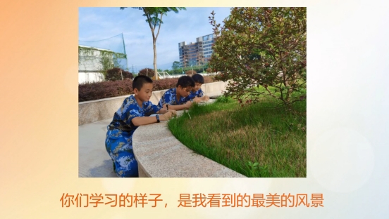 自主探究精彩回顾,师生情感共鸣: 在对重点知识进行总结后,何老师为学生送上了一个惊喜视频,原来何老师将学生在课前户外自主探究的瞬间做成了视频,并精心配上了文字。学生们看着自己被视频记录的样子,极为兴奋喜悦,何老师借机鼓励学生要继续保持这种探索精神,迎接初中生活。