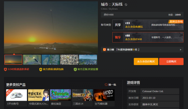 说它牛逼绝对是有原因的,作为一个不是那么知名的游戏平台来说,如果只是为了体验游戏,或者说自己不是一个特别能玩游戏很久的一个人,那么共享账号足以,价格十分低,能够满足游戏需求,而且如果买错了,可以补差价直接升级独享,也是很人性化的体验了。