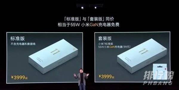小米11推出了标准版和套装版,价格相同,值得注意的是标准版不送充电器,套装版配送充电器,在购买时要注意一下哦!