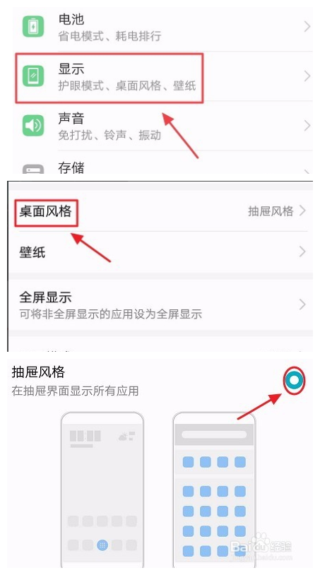 1、打开设置,点击桌面和壁纸,点击桌面风格。