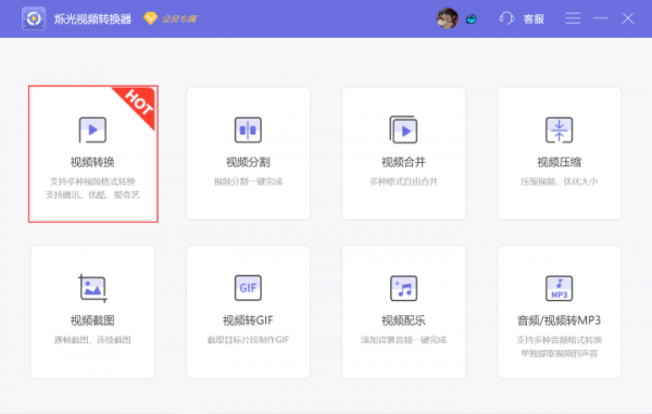 1、首先打开烁光视频 转换器 ,点击首页的【视频转换功能】进入功能页面。
