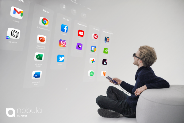 内容生态是“5G+MR”十分重要的一环。通过Nreal自主研发的3D系统——Nebula“星云”,运营商和开发者能够将常规的手机2D APP内容无缝转换到3D环境之中,戴上Nreal Light之后,用户即可随时享受高带宽、低延时,IMAX影院般无边际、无限制的极致体验。目前星云系统支持海量安卓原生应用,普通用户手机上的抖音 、爱奇艺、快手、Bilibili等都可直接调用。