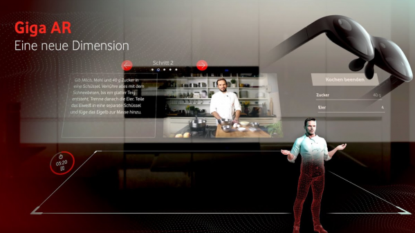 借助沃达丰的Giga AR,用户可以在Nreal Light智能眼镜上使用“厨房故事(Kitchen Stories)”,“厨房故事”曾在2017年获得苹果设计大奖。