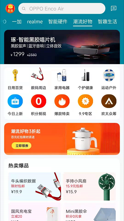 与此同时,欢太商城在洞察到消费者多样化需求和喜好的基础上,逐步向综合电商平台方向探索,陆续引入了覆盖智能家居、日用百货、个护健康、生活家电等领域的第三方好物。在引入第三方产品时,欢太商城也采用了官方品质要求进行把控,商品均通过对大量产品进行筛选,优中选优,保障给消费者带来的商品都是“价格低、品质优”的爆款系列好物。