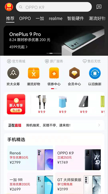欢太商城是以潮流数码、AIoT品类销售为主营业务的综合类电商平台,同时也是OPPO、OnePlus、realme三品牌在中国的官方线上商城,用一个平台与消费者建立直接沟通,打造差异化的服务和购物体验。而且,陆续推出了多个备受关注的创意营销活动,用拼团、秒杀、集卡、直播等多种玩法与用户紧密互动,一步步打破刻板印象,走近大众视线。