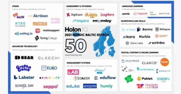 HolonIQ 平台通过自己强大的数据部门团队和市场专家根据 HolonIQ 的评分指数(包括资本、团队、市场、产品和动量)从来自北欧和波罗的海国家的近 1500 多家 EdTech 公司中挑选了这 50 家数字教育公司。在2021年的前50强名单中, 北欧公司占了全部名单的六成多。