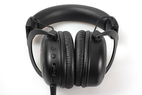 在左耳罩上,可以看到开关键、麦克风静音键、音量调节键、充电接口和麦克风接口。不得不说,这样的设计很符合玩家的习惯,当右手使用鼠标的时候,左手可完成开关、音量调节、麦克风静音等大部分操作。麦克风采用防误插设计,只有正确角度才可插入,其他角度均无法插入。