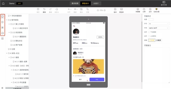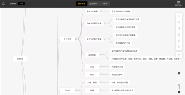 在原型设计模块,原型结构和前面的思维导图是一一对应的,即便你修改了其中一个结构,两边也能够实现同步。