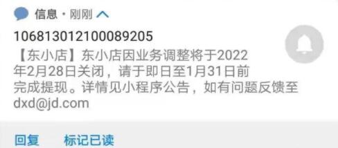 A5创业网(公众号:iadmin5)1月19日报道:今天,京东社交电商平台东小店发通知称,因业务调整,东小店将于 2022 年 2 月 28 日 24 时关闭下线。目前,东小店已关闭除提现及提现认证、在线客服之外的所有功能,不再跟单计算收益。东小店提醒用户尽快完成提现,可提现时间为 2022 年 1 月 18 日- 2022 年 1 月 31 日。