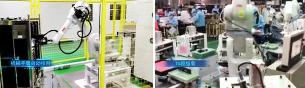 采用六轴机械手臂辅以人工解决DIP及后段组装非标准工序,提高20%生产效率