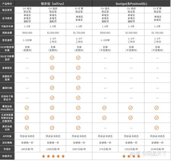 请看锐安信与 Sectigo的对比图,快速了解锐安信的优势。