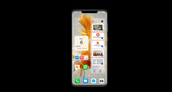 有了超级中转站,Mate 50系列用户可以将需要分享的文字、图片、文件等暂存在中转站内,再切换到需要分享的应用中批量粘贴。比如在浏览器中选择文字、图库中选择图片、文件管理器中选择PPT暂存在中转站,然后在聊天软件中一次过粘贴发送给同事。如需跨设备共享,超级中转站中的内容也支持一键流转到电脑、平板等办公设备中。