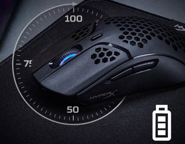 虽然2.4GHz或者蓝牙无线连接技术的耗电量谁高谁低一直争论不休,但是HyperX旋火无线版游戏鼠标充满电可以使用100小时,这也让耗电量高低的争论没有了意义。如果是一般玩家,每天游戏3-4个小时,几乎1个月才需要充一次电,既可以减少频繁充电的烦恼,又可以正式告别电量焦虑症,全身心投入到游戏当中。