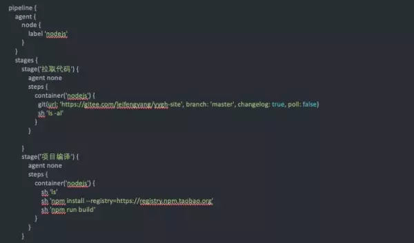 相应地,Jenkinsfile 中增加了如下内容: