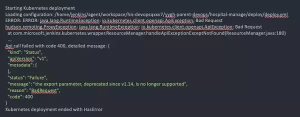 观察报错内容,似乎是负责执行流水线的 Jenkins Agent 版本太老所导致的。 经过查阅,笔者发现 KubeSphere 的官方维护人员已经提交了相关 issue(https://github.com/kubesphere/website/issues/2096)来说明此事。根据说明,报错的根源在于 Jenkins 的官方插件 kubernetes-cd-plugin[4] “年久失修”,我所安装的 Kubernetes 的 API 版本是 v1.22,而 Jenkins 的 kubernetes-cd-plugin 却已经停摆两年。 对于这个问题,KubeSphere 官方提供的解决方案是以 shell 命令 kubectl apply -f your-crd-file.yaml 的方式进行部署,而非在 UI 上添加 kubernetesDeploy。