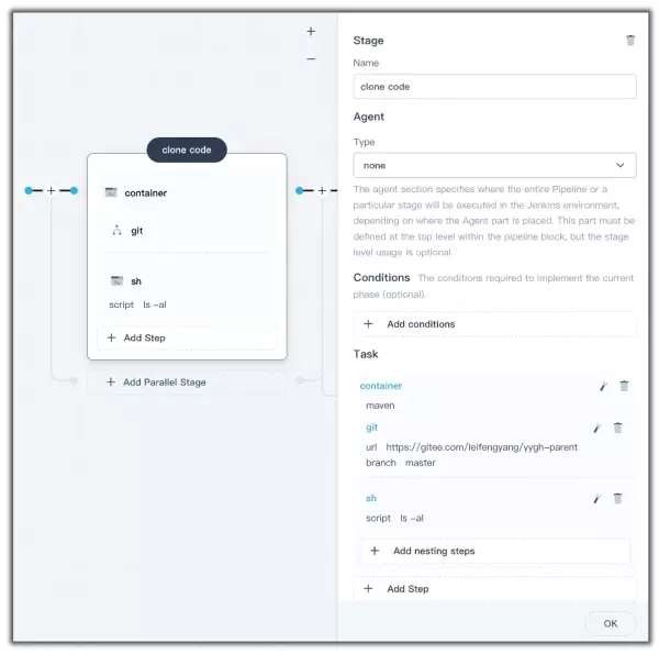 Stage:阶段,一个 Pipeline 可以划分为若干个 Stage,每个 Stage 代表一组操作。Stage 是一个逻辑分组的概念,可以跨多个 Node。