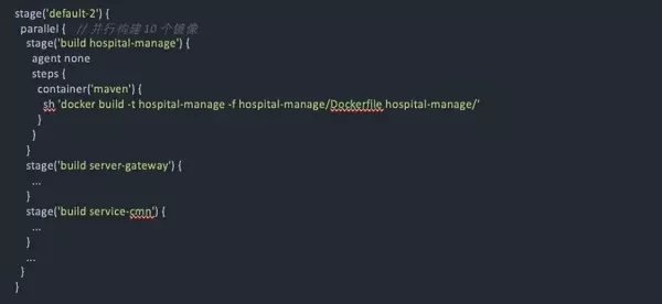 同样地,上述过程也以并行的方式执行。最终,Jenkinsfile 中被添加了如下代码: