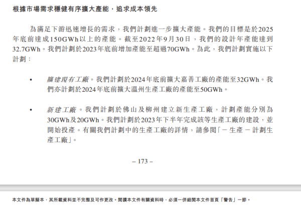 从招股书中,我们可以知道,截至2022年9月30日,瑞浦兰钧已经具有32.7GWh的设计年产能。预计到2023年底,其总产能将超过70GWh。