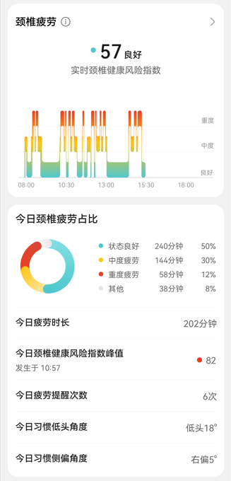 华为智能眼镜2在帮助用户高效生活工作的同时,也关注用户的健康问题。通过与中山大学附属第一医院康复医学科合作,为用户带来全新升级的颈椎健康2.0功能。颈椎疲劳指数能够更科学反映用户用颈习惯,结合实时监测与提醒功能,为佩戴者带来全天候的颈椎健康关怀。
