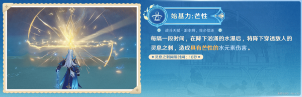 最终形态的重击不会消耗体力 ,保持此形态时就可松开A键,无需一直长按,持续时间是3s ,也没有“锁面板”的机制 ,享受实时面板,对单时共可造成8次水元素伤害 ,附着能力受附着次数(第1、4、7..次)与CD(大约3s)影响,每次附着都会对敌人施加弱水附着。