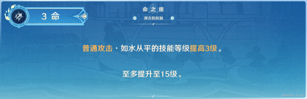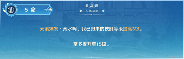 Q的天赋等级直接提高3级 。节约资源,快速养成的命座,对于Q的伤害上限得到提升 。