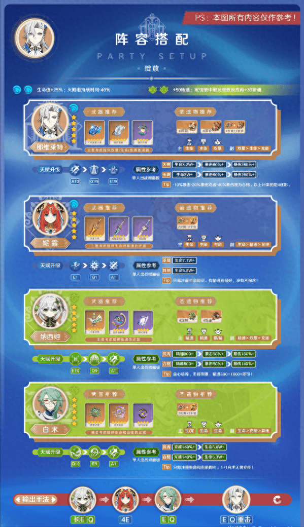 那维莱特的阵容搭配思路会围绕一下遗龙之荣效果以及持有的命座,思路的大方向是区分0命与1命: