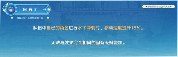 当那维莱特处于队伍中时,队伍中的角色在水下冲刺(长按冲刺键)会获得移速加成,联机时队友不会获得该效果。