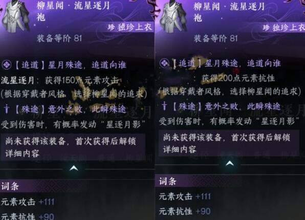 此外,流星逐月袍还有独特的穿搭效果。当与黑色风格的装备一起穿搭时,可以获得额外的200点元素抗性;而与白色风格的装备一起穿搭时,则可以获得额外的150点元素攻击。这一特性使得流星逐月袍在PVP战斗中更具优势。