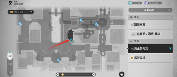 1、玩家来到匹诺康尼,然后打开地图,选择【黄金的时刻】3层。