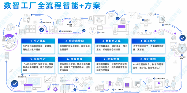 立足于“数智工厂顶层设计与规划”,鼎捷数智工厂全流程方案以数据为核心,自下而上贯穿IT层与OT层,真正打通并联动生产数据,推动业务可视化、柔性生产、资源优化配置等数字化应用场景成为现实,逐步迈向未来数智工厂。