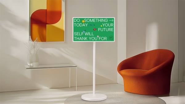 和第一代StandbyME随行屏相比,在移动性方面,StandbyME 2实现了维度升级,新增配带轮子的支架,用户可以轻松移动设备,提供了更加灵活多样的使用场景。StandbyME 2还增加了远距离语音识别功能,用户只需通过语音命令即可快速切换频道、调整音量或搜索内容,无需繁琐的按键操作。用户也可以选择使用磁吸式遥控器或触摸屏,和屏幕直接进行指令交互。