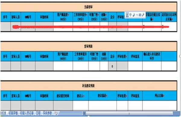 (2)工作流设计:“网点流程优化建议申报表”的业务逻辑通过工作流和表间公式实现各环节的自动流转,初审人员由指定的分行管理人员进行管理设置,初审员对申报项目进行评分,系统根据评分自动判定该项目是否通过审核,当此建议通过数超半数即进入复审,复审员复审通过后,所有运营人员可对此建议进行上报补充建议,补充建议结束后由复审员进行再次审核。