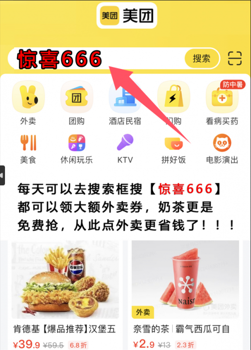 美团0元喝奶茶:美团app搜索「惊喜666」,奶茶免费喝。